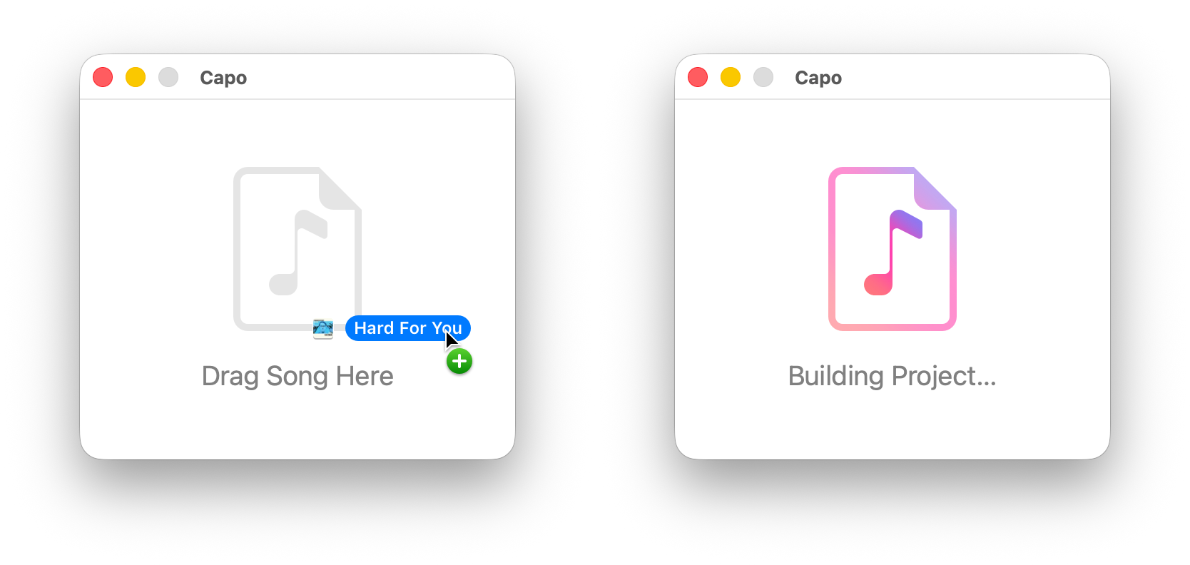 If the song is in Apple Music and you've purchased it from iTunes (i.e., you're not just streaming it), simply drag the song from Music onto Capo's window. You can also drag it onto Capo's icon in the Dock.