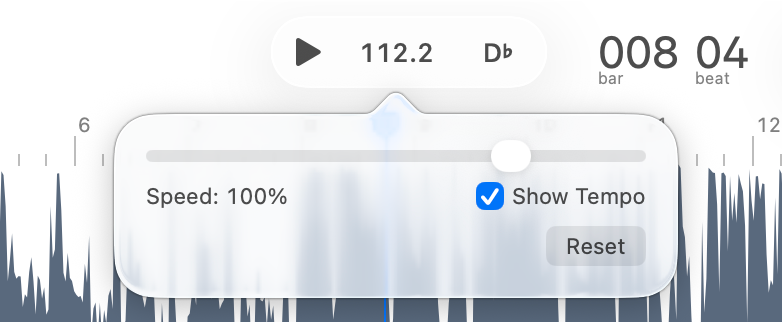 Try this: Start the song playing, click the tempo button in the toolbar, and then drag the speed slider to the left. The song slows down, but the pitch stays the same—the guitar doesn't suddenly sound lower, the singer doesn't sound like they're underwater. This is the technology that makes Capo special.