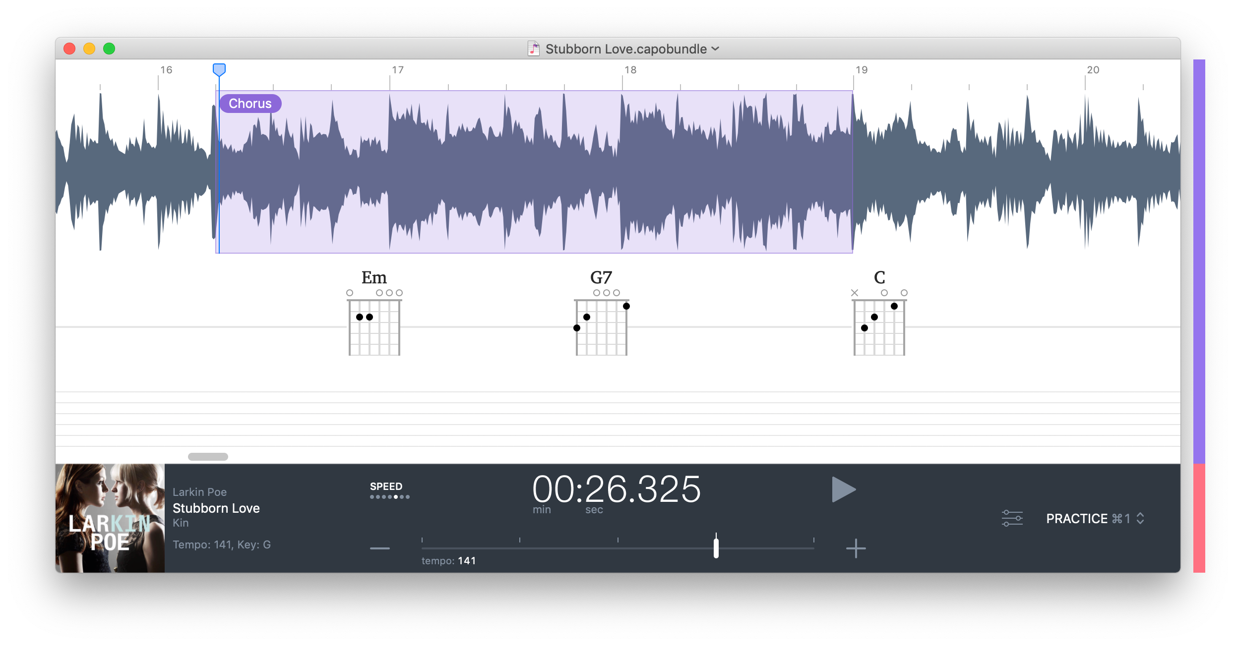 The amount of information that you add to a song in Capo is up to you. For some, it may be important to ensure that the bars and beats are correctly marked, and all the chords are correct down to the voicing they wish to play. For others, they may prefer to disable the chord display altogether and focus only on listening and placing markers at key locations in the song.