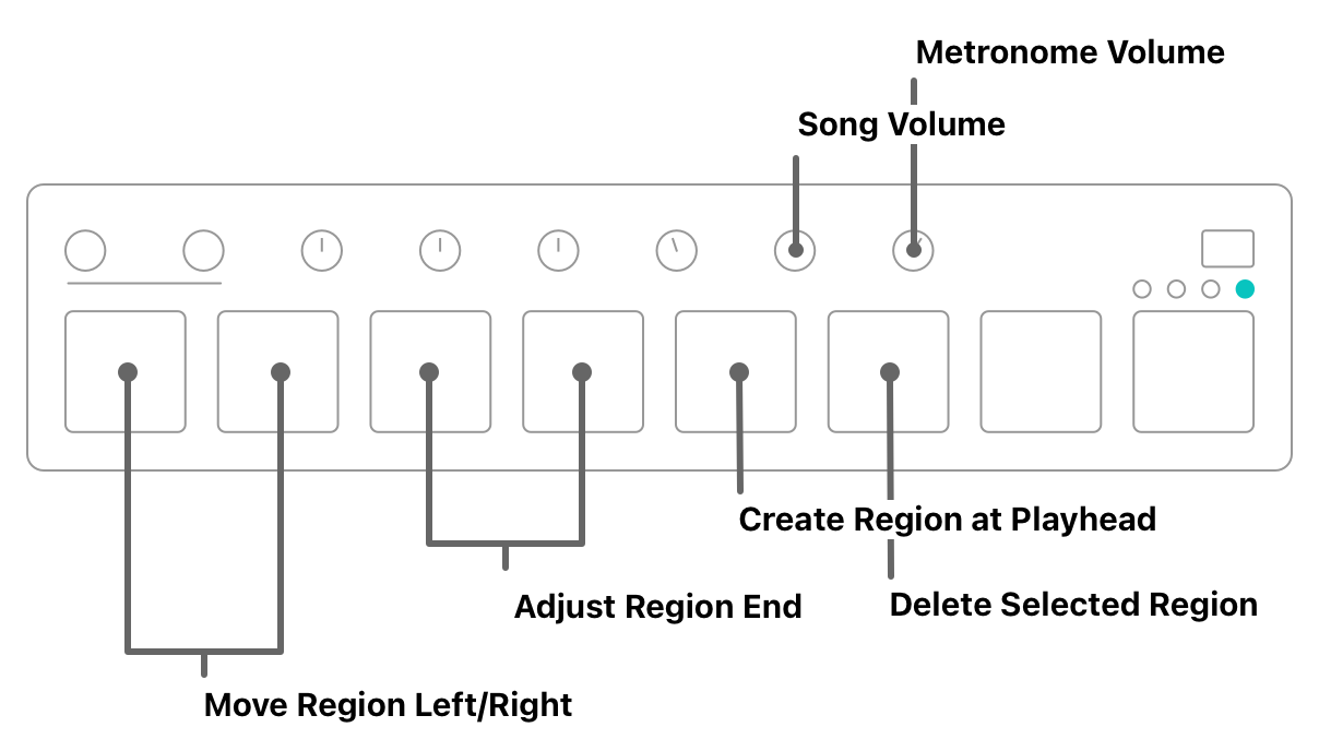 Finally, the fourth bank will hold some useful region controls that'll let us work efficiently when we're in the zone. We pop over to the fourth bank when we need to create, resize, or move regions around. Once we're set, we go back to the third bank to do our playback control.