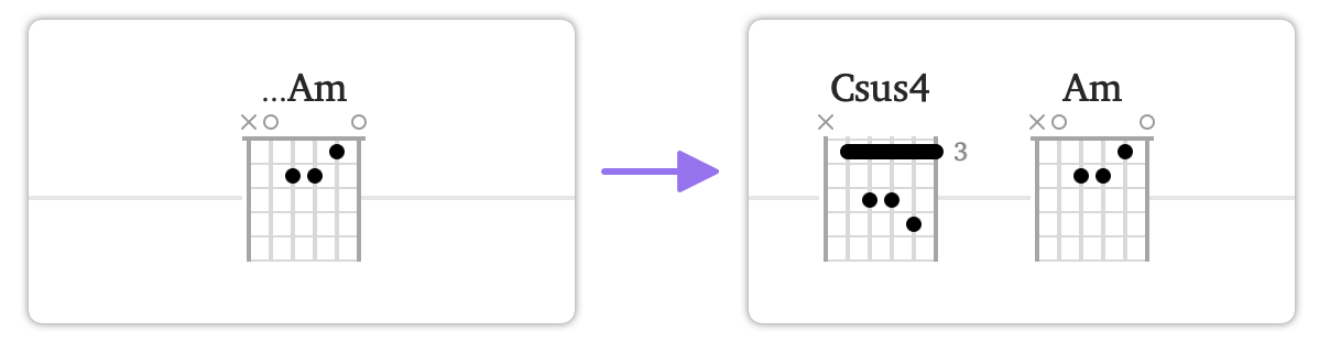 Capo collapses chords in a way that shows the last chord in a group of chord changes, and the collapsing is indicated by an ellipsis (…) character before the chord name. For example, see the …Am shown in the example below.